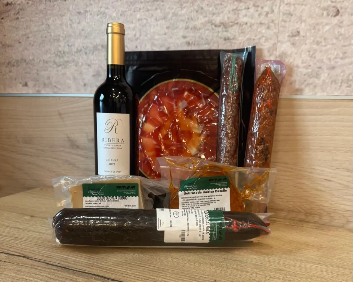 Disfruta del auténtico sabor de España con este exclusivo lote ibérico que incluye jamón gran reserva, embutidos de primera calidad, queso curado y vino tinto valenciano. Tradición y sabor en cada bocado