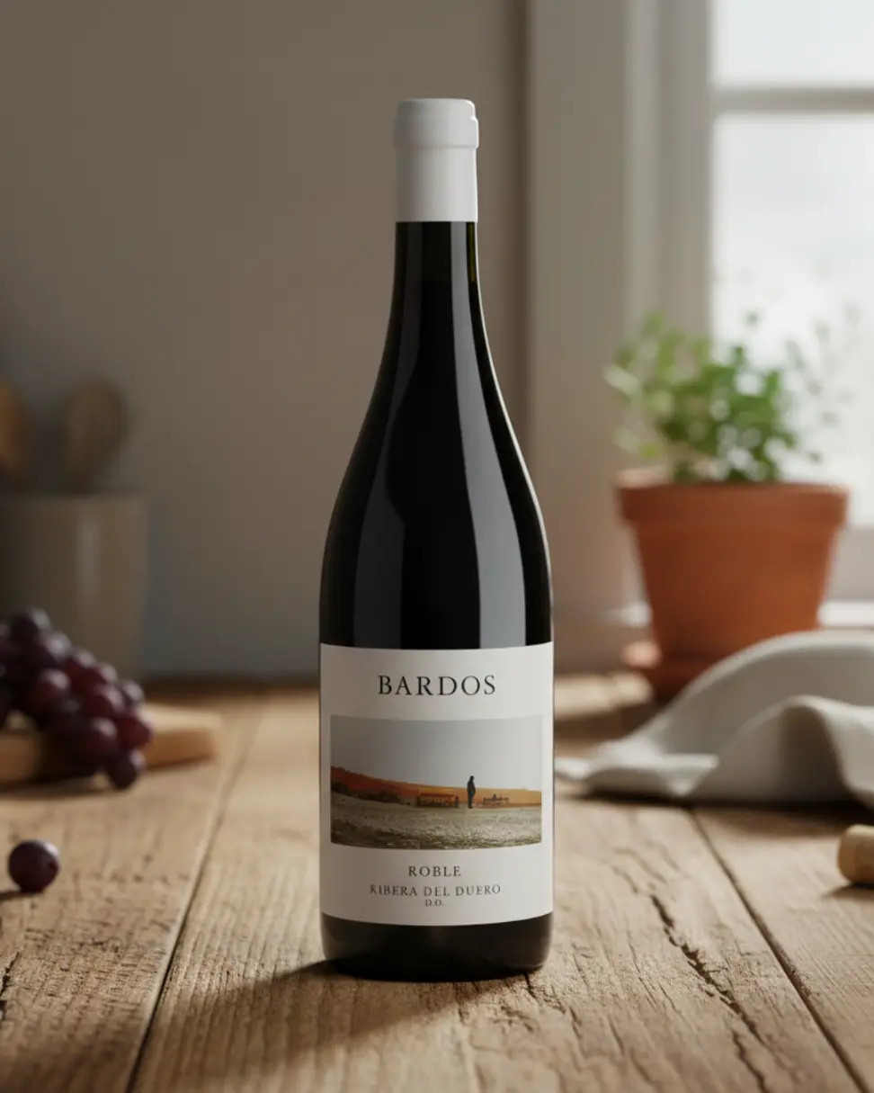 El Vino Bardos Roble es la elección perfecta para quienes buscan un tinto de Ribera del Duero fresco, frutal y accesible, que combine la expresión auténtica de la Tinta Fina con una crianza ligera que potencia su carácter sin perder vivacidad.