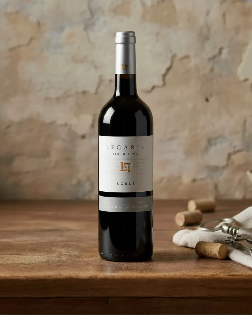 El Vino Legaris Roble es la elección ideal para quienes buscan un tinto de Ribera del Duero fresco, elegante y accesible, que combine la autenticidad de la Tinta Fina con una crianza ligera que potencia su carácter frutal y su equilibrio.